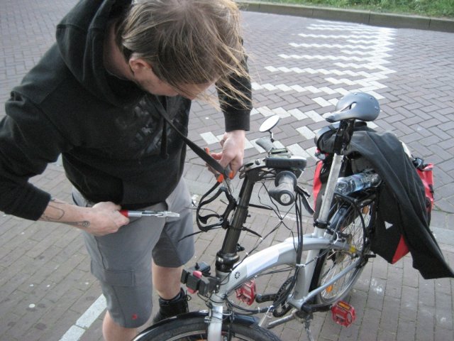 Ostersamstag bin ich bei traumhaften Wetterbedingungen in Amsterdam beim BRM 400 "Het Gewest Holland" an den Start gegangen. Herausforderung für mich war der späte Start um 20:00. Da ich mit Stau gerechnet habe, habe ich mich bereits um 14:00 auf den Weg begeben. Aufgrund schlechter Erfahrungen habe ich nicht in Amsterdam geparkt, sondern in einem kleinen Vorort mit einem kostenlosen P&R Parkplatz etwa 12km vom Start entfernt. Von dort auf habe ich mich auf schönen Umwegen dann dem Start, einer interessanten Schrauberwerkstatt mit Namen "Madmen Bicycle Repairs & Coffee" genähert. Da ich dieses Mal meine "Minibar" für die Lenkerstange zu Hause vergessen habe, haben mir die Jungs dort mal eben einen passenden Ersatz rangebaut. Habe mich in der Zeit noch mit Coffe und Appeltaart gedopt. Habe viele nette Bekannte wiedergetroffen. Es gab wieder viel zu erzählen. Ein Themenschwerpunkt war das Sturmbrevet in Boekelo im März.