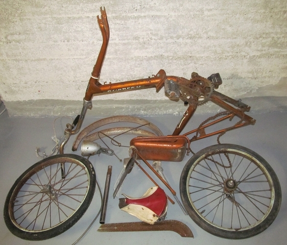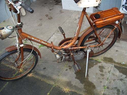 Heute habe ich ein neues Spiezeug für meine kleine Faltradsammlung ersteigert. Ein "Baby Mosquito 35cc" ist es geworden. Leide rnicht fahrtüchtig und ohne Papiere. Kennt vielleicht einer von euch dieses Teil oder hat irgendwo noch Unterlagen rum liegen?