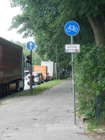 Pardon, aber ein völlig verwahrlostes b.-pflichtiges Wegelchen mit Riesenbodenwelle entlang einer völlig harmlosen Straße - das schreit nach nach einem sofortigen Entfall der Benutzungspflicht, einer Sperrung der Gefahrenstelle mit Absperrmitteln und einer Versetzung des zuständigen Beamten in den Keller zum Aktenabstauben.