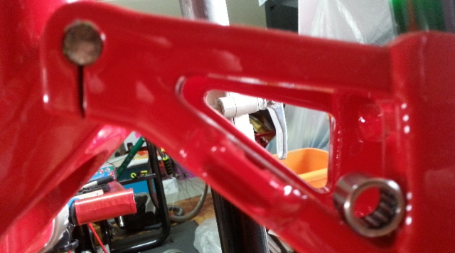 Pacific Cycles hatte die Lösung: Die Lager sind im Hauptrahmen, nicht in der Schwinge - und: in meinem Fall innen abgenutzt und außen überlackiert. -> an anderer Stelle vermutet und übersehen...