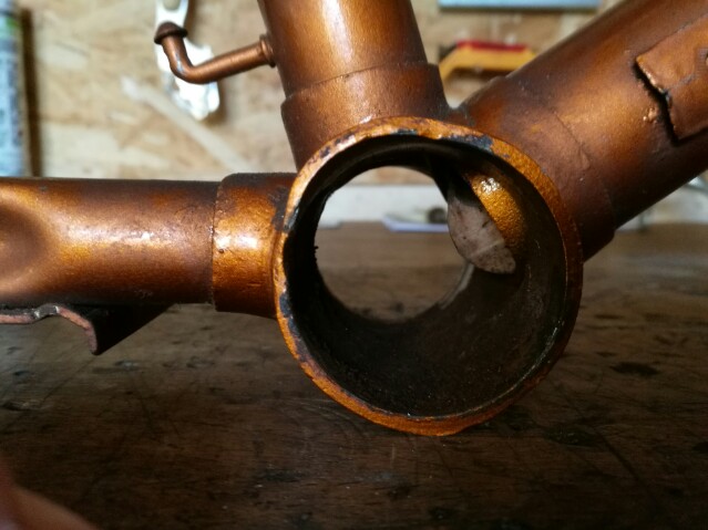 Normalerwweise ist so ein mißhandelter Rahmen Schrott. Da war warscheinlich der "eilige Willi" mit einer 2 [m] langen Brechstange und einem Vorschlaghammer am Werk und hat versucht, die eingepreßten Abstandsschalen des Thomson-Lagers herauszuwursteln.