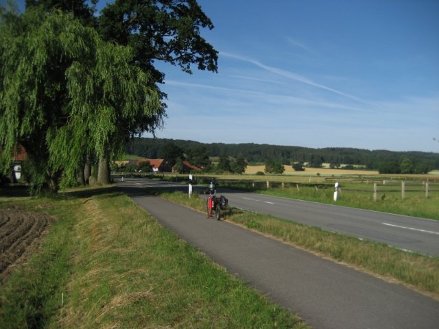 Die Strecke war ein Traum, das Wetter die meiste Zeit ideal (sonnig, leicht bewölt und nicht zu warm, 1. Tag kein Wind). Die ersten 300 km liefen sehr gut. Bereits gegen Mitternacht war ich wieder Lohne, habe mich dann 2h in meinen Kofferraum auf eine Matratze schlafen gelegt. Gegen 2:30 bin ich dann wieder gestart. Die Rennfahrer waren da bereits wieder 4.5 Stunden unterwegs (2.Start nach Nudelessen und Pause). Bis zu Kilometer 400 blieb die Strecke sehr flach. Ich hatte zwar im Kopf, dass 3400 Höhenmeter zu bewältigen sind, wie sich das aber anfühlt, wenn die sich alle zwischen Kilometer 400 und 530 abspielen, davon hatte ich noch keine Vorstellung. Ich dachte ich komm zeitlich überhaupt nicht mehr durch, zumal auch noch kräftiger Gegenwind auf diesem Abschnitt herrschte. Vielfach bin ich die Anstiege im Wiegetritt hochgefahren, um nicht zuviel Zeit zu verlieren. Mein Dahon musste da einiges aushalten. Zum Schluss war dann aber alles wieder gut und ich habe das Ziel noch mit 3h Zeitreserve erreicht.