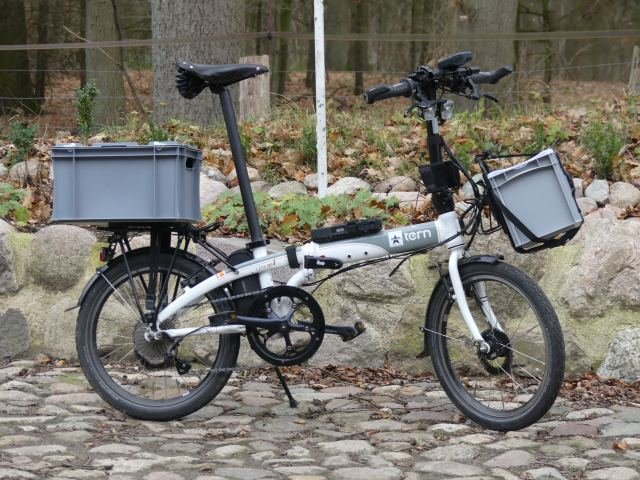 Hatte vorn im Korb (Eigengewicht ca. 1100 Gramm) ein 6er Pack 1 ½ Liter Sprudel Flaschen. Also 10 Kg Zuladung. Und bin damit einen mir bekannten Feldweg bergab gefahren. Fazit: So möchte ich auf keinen Fall unterwegs sein. Das hüpft, wackelt und ächzt. Hab damals auf halber Strecke noch den Korb sicherheitshalber mit einem Seil gesichert. So bis 3 - 4 Kg schmaler, tief liegender Zuladung ist das für mich o.k. Für ne Lenkertasche in Verbindung mit verstellbarem Vorbau eine gute Lösung. Mit dem „Brompton System“ nicht vergleichbar. (Das ist aber auch nicht so einfach am Tern nutzbar – eben weil es sehr dicht am Rahmen liegt und Brompton Vorbau und Zugführung darauf abgestimmt hat)