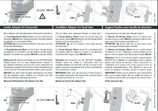 Ich möchte den Klickfix Steuerrohr Adapter montieren um später dort eine geeignete Tasche bzw. Korb zu befestigen.