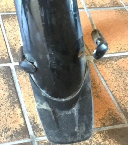 Dabei ist mir ein Clip welches die Schutzblechstrebe am Schutzblech hält abgebrochen. Also diese „Kralle“ nenne ich es mal. Meines Wissens sollten es SKS Schutzbleche sein, aber ich finde diese Krallen nirgends.