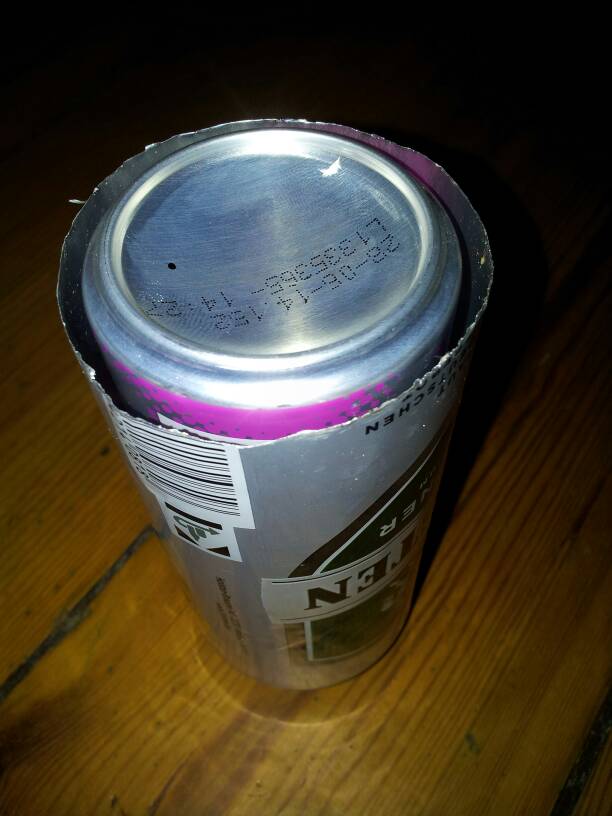 Hab mal eine 0,5er Holzten Dose aufgeschnitten und eine 330ml Energiedrink reingestellt. Siehe Bild. Luftspalt sollte ausreichen. Gibt ansonsten ja auch 250ml Energiedrinks, aber das geht dann wieder auf Kosten des Brennraumes. So eine leere Bierdose wiegt übrigens 20g (komplett, mit Boden und Deckel). Die sind erstaunlich hartnäckig bei der Bearbeitung, ziemliche Fummelei mit der Stahlsäge. Wohl besser mit Bastel-Skalpell. Jetzt noch die Frage, wie ich da das Unterteil wieder drüber bekommen und dann Löcher rein. Angeblich soll man die mit Wasser voll machen und ins Eisfach, um Gegendruck für den Bohrer zu erzeugen. Mal schaun.