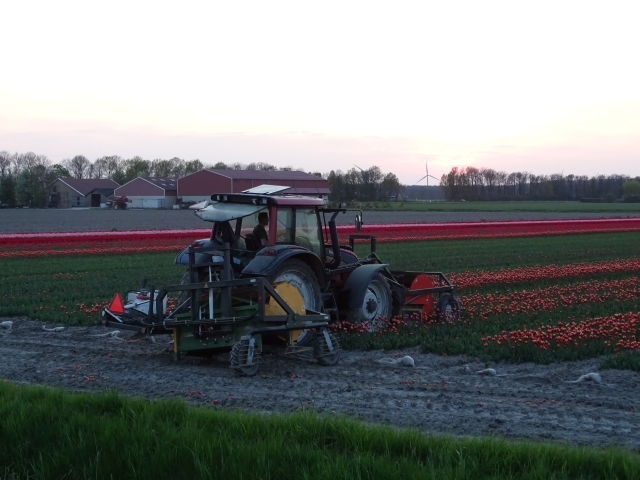 Von mir auch noch was Kurioses. War wieder auf der anderen seite der Grenze unterwegs. Zwei Trecker mähen ein farblich sortiertes Tulpenfeld ab. Zu sehen ist aber nur ein Mähwerk , aber keinerlei Behältnis für die Tulpen(blüten). Gruß
