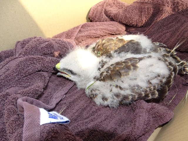 Diesen noch sehr jungen, halbtoten Bussard habe ich heute bei 30° hilflos am Wegesrand im Gelände enteckt. Musste erst einmal nach Hause fahren, um mein Auto und einen Transportkarton zu holen. Er war dann zunächst verschwunden, hab ihn dann aber in etwa 15 m Entfernung wiedergefunden.