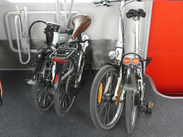 Bei den Doppelstockwagen sind im unteren Abteil die ersten Sitze nach der Treppe ideal. Da hab ich Birdy und auch Tern immer gut abstellen können.