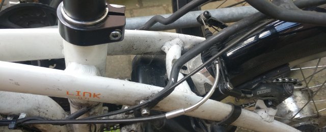 eine Art Leerrohr verlegen am Gepäckträger entlang. So, das möglichst eine eingehängte Tasche nicht stört.