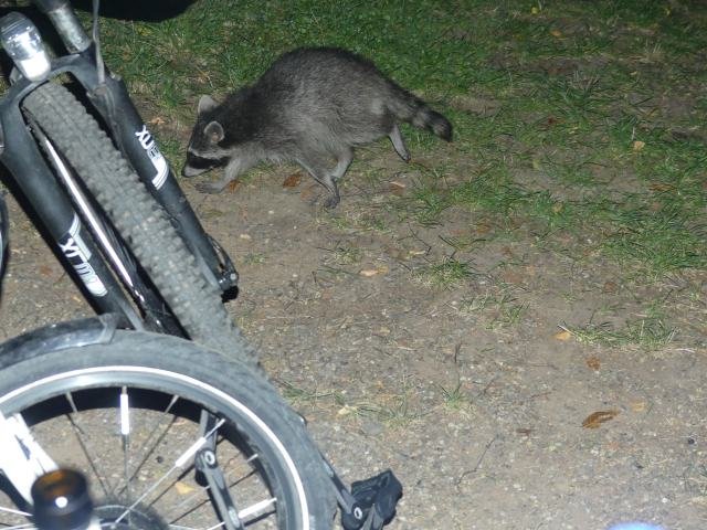 Dass Waschbären ihren Namen zu unrecht tragen, ist hinlänglich bekannt. Die Räder waren heute auch nicht sauber. :mrgreen: Es waren mindestens drei Waschbären. Einer ist meiner Freundin fast auf den Schoß geklettert, als sie sich Lakritze aus der Tüte nahm.