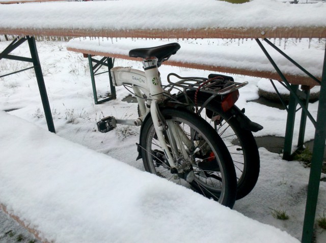 Sei mal bloß vorsichtig. Mit nem weißen Dahon im Schnee - finden sie dich erst bei Tauwetter, wie einst den Ötzi. :mrgreen: