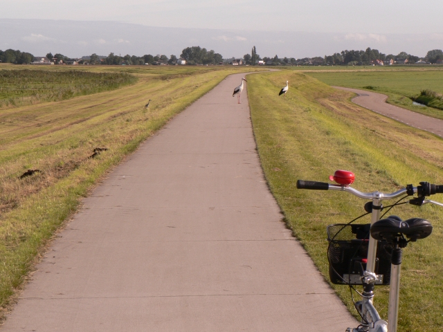 Hier wurde an vielen Stellen Kies aus dem Boden geholt und diie Löcher vielfach wieder mit besonders giftigem Material verfüllt. Diese Stellen sehen heute besonders hübsch aus, es grasen Kühe, es wächst der Mais und Störche suchen nach Nahrung.