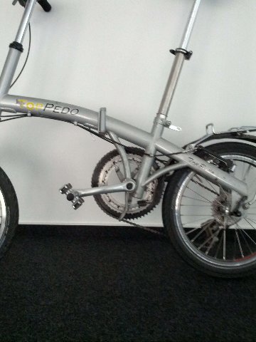 Der wieder fahrbare und etwas leichter gewordene Folding*Star im März 2018. Das Gewicht ist in der Komplett-Ausstattung (incl. Schloß, 2 Gepäckträger, Werkzeugtasche mit Ersatzschlauch, Luftpumpe, Spiegel, Tachometer, Pedalhaken, Trinkflaschenkäfig u.a.) 17,8 ]kg}. Gemessen an den auf dem Markt angebotenen Trekkingrädern lieg ich mit dem Gewicht mitten drin. Und diese Räder können nicht mithalten, wenn es um die Entfaltung und sonstige Ausstattung geht. Z B. ist es ist nicht üblich, daß Räder mit einem brauchbaren Schloß ausgestattet sind.