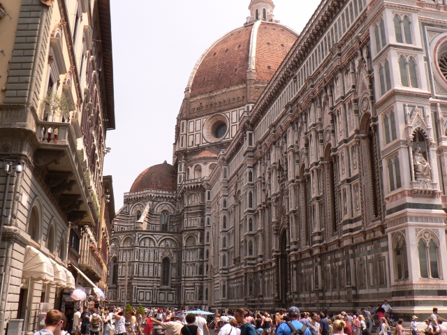 Es gibt eine Rangordnung, die es zu beachten gilt: Rollerfahrer haben Narrenfreiheit (auch in Anwesenheit der Polizei), der Autofahrer ordnen sich unter oder bereuen es. Erstaunlicherweise nehmen die Rollerfahrer auf die Radfahrer Rücksicht. Es gibt in Florenz auch Abschnitte mit gut ausgebauten Radwegen (fast Autobahn-Charakter), die wir auch benutzt haben. Nahe der Sehenswürdigkeiten geht es dann meist auch mit dem Rad nicht mehr weiter, weil es einfach zu viele Fußgänger gibt.