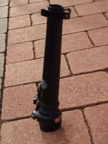 Ich verkaufe ein schwarze Lenksäule passend für Falträder mit 28,6mm Ahead Gabelschaft. Die Länge beträgt ca. 29cm. Am oberen Ende hat die Lenksäule einen Innendurchmesser von 28,6mm. Ich liefere ein passendes Rohrstück mit, so dass darauf beliebige 1 1/8" Ahead Vorbauten montiert werden können. Die Lenksäule faltet links hinten, d.h. bei den meisten Falträdern innenfaltend.