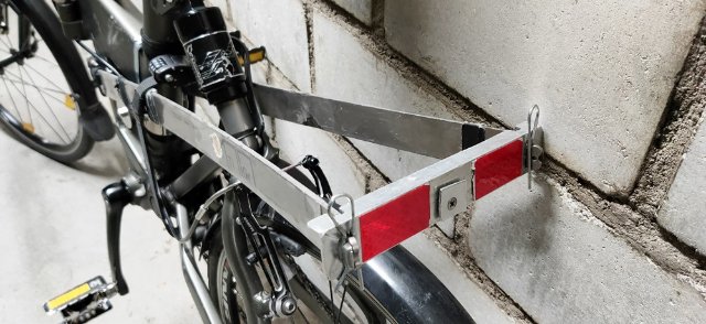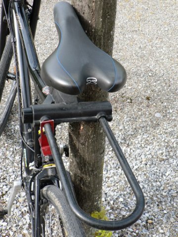 Nein, kein Verschreiber. Ich hatte an meinem ehemaligen Mountainbike 17 Jahre lang das geniale Lock & Luggage von Trelock (https://www.google.com/search?rlz=1C1PR ... ource=univ). Das Prinzip ist ebenso einfach wie genial: Beim Fahren braucht man kein Schloss, beim Parken keinen Gepäckträger. Leider gibt es das L&L nicht mehr, und an unsere dicken Sattelstützen hat es ohnehin nicht gepasst. Da war mal wieder Eigeninitiative gefragt. Die Ausgangsbasis war das berühmt-berüchtigte TiGr Lock (https://tigrlock.com/tigr-bow-lock/) aus Titan. Klar kann man es knacken, wie jedes Schloss, aber es weist eine mittlere Sicherheit auf. Vor allem eignet es sich von der Form her sehr gut als Gepäckträger und ist materialbedingt nicht allzu schwer. Mit einer großen Gelenkbolzenschelle, einer langen Schraube, zwei Unterlagscheiben, mehreren Muttern, zwei Hülsen, einem L-Profil aus Alu und etwas Gummi habe ich eine Halterung gebaut, die es erlaubt, das TiGr Lock während der Fahrt als Gepäckträger zu nutzen. Das Abschlussblech mit den roten Reflektoren wird mit zwei Spannklammern fixiert und dient als Halterung für das Rücklicht. Eine große Einkaufstasche wird mit Spanngurten fixiert und passt problemlos drauf. Die Nutzlast wird damit tiefer und schwerpunktgünstiger untergebracht als auf dem Tubus-Sattelstützengepäckträger. Zwar ist das Schloss nicht ganz starr, so dass die Ladung leicht schwanken kann, aber das war nie ein Problem. Damit sie bei Bodenwellen nicht nach oben wegfliegt, verzurre ich das TiGr Lock mit einem ebenfalls leichtgewichtigen Ottolock (https://www.ottolock.de/de/ottolock-75c ... ck-schwarz), das ich für kurze Aufenthalte ohne TiGr Lock nutze, am Rahmen. Dieses scheint allerdings der Dauerbelastung nicht gewachsen zu sein und zeigt bereits einige Gebrauchsspuren. Vielleicht muss ich auf einen gewöhnlichen Zurrgurt umsteigen.