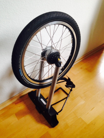 Zur Orientierung kann man von dem Antriebsmoment eines "Standard" Mtb-Hinterrads ( 26 ", 32 Speichen, konifiziert und 1,5 [mm] dünnes Mittelstück mit Hohlkammerfelge ausgehen und auf den kleineren Durchmesser eines 20" Laufrades umrechnen: