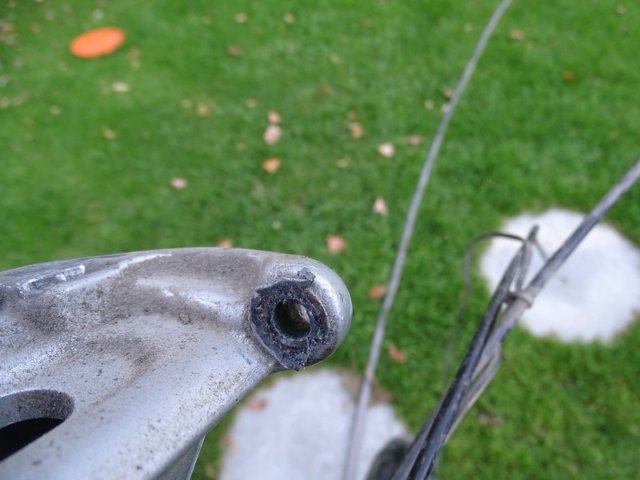 Auf der heutigen Ausfahrt ist mir bei der Laufleistung von 31500 km der untere Bolzen der Rahmengelenkes gebrochen und der Gewindeteil des Bolzen steckt natürlich noch drin. Das ist ziemlich übel und riecht nach Totalschaden.