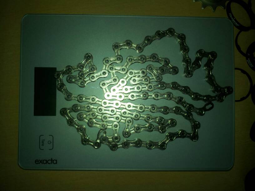 Das TA Alize Kettenblatt 49z wiegt 91g, das 53z von SHUN wieht 86g, also sogar leichter, ist auch etwas dünner. Das 39z Blatt wiegt 36g