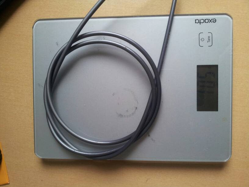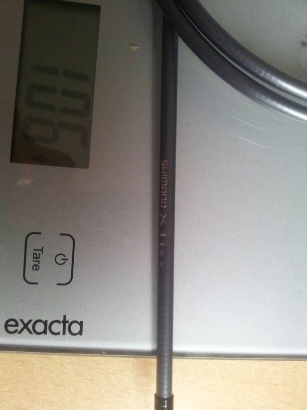 XTR Bremszug für hinten, 105g, schwerer als gedacht. Da lohnen sich Nokon oder iLink Züge. Die kriegt man aber nicht durch die Halterungen, glaub ich.