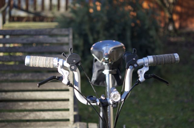 Da mir diese Gummigriffe an meinen Brompton Faltrad gar nicht gefallen habe ich mir von Brooks die Plump Leather Grips gekauft.