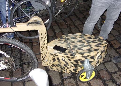 Bei der Anreise aus Lüneburg, mit dem Zug, traf ich schon im Hauptbahnhof einen ziemlich jungen Radler, Student, , mit einem "Long-John", auf dessen Ladefläche ein sog. "Sound-System" festgezurrt war. Bei ihm ein Kumpel, Berufsfeurwehrmann, auf einem "Fixi". Sie waren aus Elmshorn angereist und schon alte "Critical Mass"-Hasen.