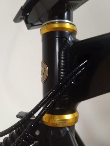 Danke schön. Die restlichen Teile VR-Schwinge und HR-Schwinge sind endlich beim Eloxierer. Sollten Am Freitag wieder bei mir sein. Die Knees (Titanbolzen für die VR-Schwinge) wurden bei Bikegang bestellt. Die silberenen aus Stahl haben mir ganr nicht gefallen. Zudem diese gleitkugelgelagert, was das Ansprechverhalten der Gabel deutlich positiv beeinflussen dürfte. Die VR- und HR-Federelemente von Colour+ waren mir dann doch zu teuer und ich werde es bei der Serie belassen.