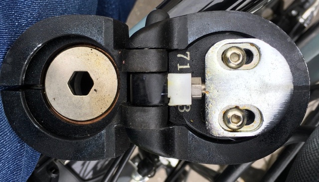 Wie sähe es denn korrekt eingestellt aus? Bei mir sieht das so aus (Dahon Mariner). So interessehalber. Bei mir ist auch irgendwie so eine Kerbe in dem Schubbolzen, fällt mir jetzt erst auf (ich falte selten den Lenker). Ich habe eine Teleskop Lenksäule.