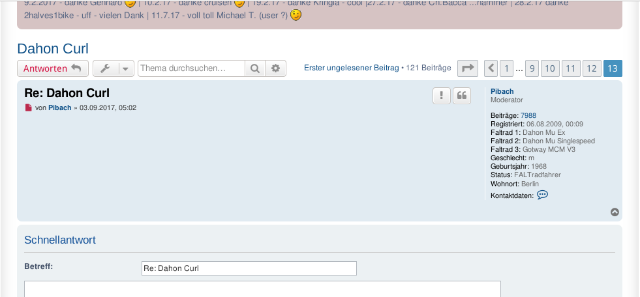Ohje ... von Computer Bild als Onlineshop Testsieger geschimpft. Hat ausreichend Personal und trotzdem nur Dorfniveau. Bei BBF ist es nicht lieferbar und ich frage mich woher er es bekommen hat. Kickstarter ? Einzelstück von der Messe. Der UVP stimmt auch überhaupt nicht weil es eher 1500 € sind als 995 €. URL sagt i7 also 7 Gang und im Text ist 3 Gang erwähnt. Marathon Racer sind auf den Bildern nicht drauf wie im Text erwähnt.berlinonaut hat geschrieben: ↑So Sep 03, 2017 12:50 pmNa ja, die haben öfter mal was als lieferbar gelistet gehabt, was beim besten Willen nicht lieferbar war, in der Vergangenheit u.a. auch das Curl. Vielleicht ist es ja diesmal tatsächlich da. In jedem Fall ist die Webseite mit der sehr heissen Nadel gestrickt: