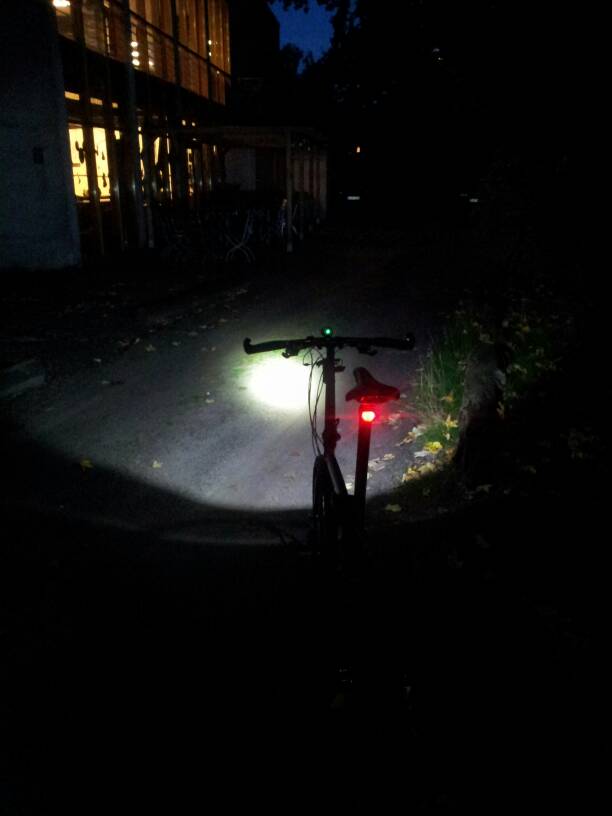 Da das Photo mit Handy aufgenommen wurde und bei Dämmerung ist es weniger beeindruckend. Die Lampe wirft aber ca 900 Lumen raus, also vielfach mehr als jedes Dynamolicht.