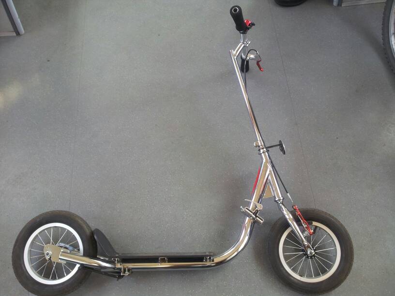 Ja, meinen Razor fahr ich sehr häufig. Den Sidewalker hab ich ja grad erst bekommen und kurz um den Block getreten. Um den zu benutzen müsste man ihn tieferlegen, ist mit ca 15cm Trittbretthöhe etwa 9cm zu hoch. Ginge z.B. durch schmale Reifen. Weiß da einer was für 12“? Man könnte auch auf 10“ umbauen, die V-Brake hätte da noch etwas Bereich.