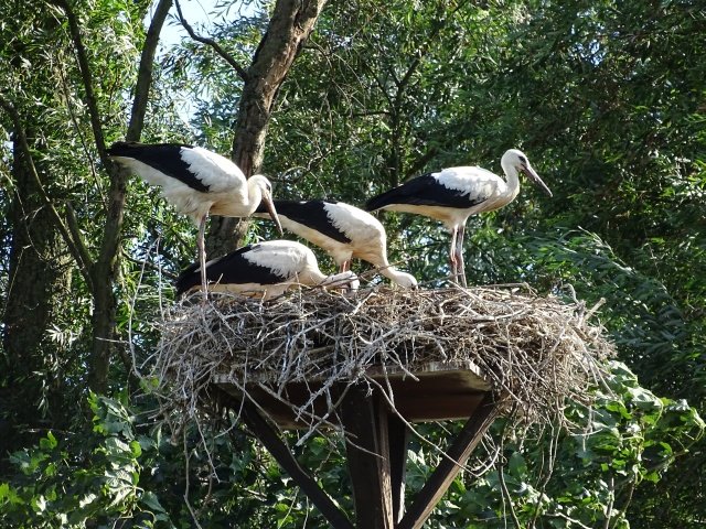 Der Horst ist voll (4 Jungstörche) und für die Storcheneltern ist nun kein Platz mehr.