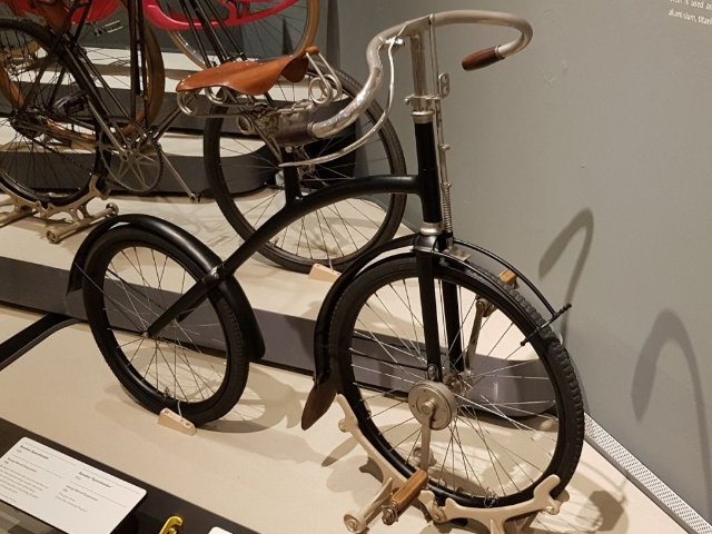 (Auch in der Ausstellung vertreten war ein Dursley-Pedersen-Rad, was ja - wie auch im "Fahrradpatente"-Buch erwähnt - vom englischen Militär genutzt wurde. Ich denke, auch das ein durchaus praxistauglicher Typ, selbst wenn er heute ein Nischendasein führt.)