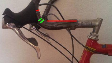 a) Bequem ist, wenn ich kurz nach der Krümmung das gerade Stück vor den STI Stulpen fasse. Dafür sollte es da aber etwa waagerecht sein oder ganz leicht angestellt, sonst rutscht man zu leicht nach vorne.