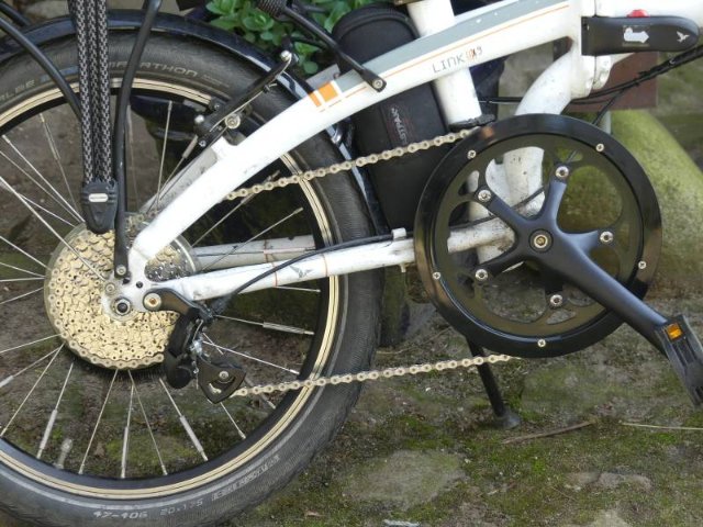 Vor dem Umbau von Kassette und Gripshift hatte ich zuerst die 9er Kette aufgezogen und hab ein paar kurze Probefahrten gemacht. Man kann durchaus eine 9er Kette auf einer 8-Gang-Schaltung fahren.
