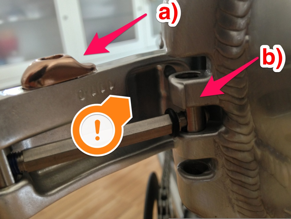 Beim Rahmenscharnier würde ich mir keinen Kopf machen. Das Rad fällt ja nicht auseinander, man hat Halt und kann sicher anhalten. Der eine oder andere hier hat das sicherlich als Kind bei Klapprädern schon mit Absicht gemacht!?