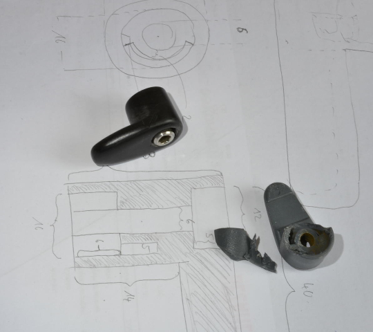 Der Knubbel ist offenbar nur für den (etwas schwer vorstellbaren) Fall, dass man während der Fahrt irgendwie am Bügel hängenbleibt und ihn aufzieht. Dementsprechend sitzt der Knubbel lose auf seiner Schraube und wird nur durch die Schwerkraft in seiner Position gehalten und steht nicht unter Spannung.