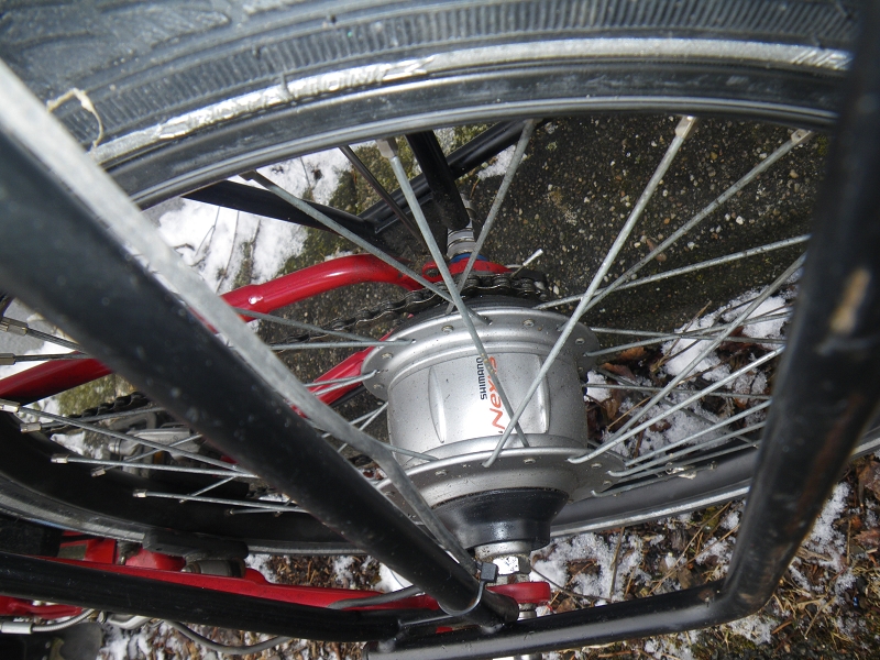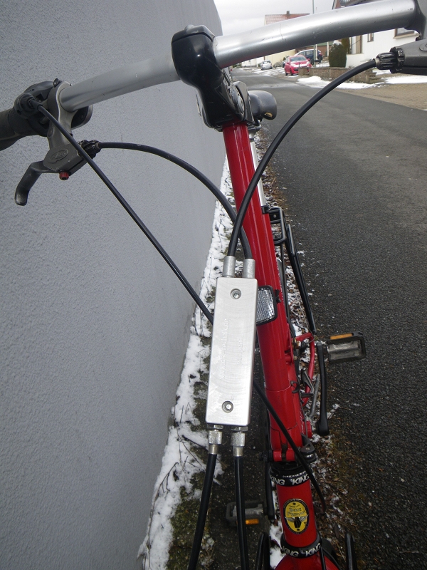 8-gang Schimano-Nexus Nabenschaltung (in 2010 Austausch gegen die ursprünglich eigebaute Rohloff-14gang-Nabe, seitdem keine 200 km gefahren...), SON Nabendynamo, Schmidt-Edelux-LED-Scheinwerfer, Gepäckträger hinten, Lowrider vorne, Schweizer Sicherheits-Brems-Modul (welches bewirkt, dass man Vorderrad- und Hinterradbremse mit einer Hand gleichmäßig bremsen kann, z.B. wenn man in einer Hand eine Last trägt und die zweite Bremse nicht betätigen kann.) Insgesamt ein absolut reise- und tourentaugliches Faltrad. Aufsteigen und um die Welt fahren! mehr dazu auf: http://www.bikefriday.com/