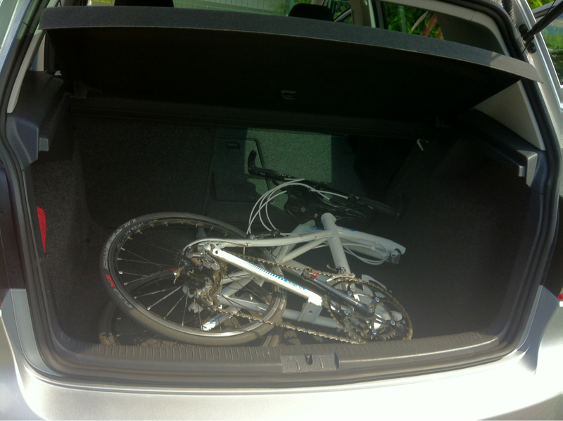 Mein neu erworbenes Dahon Speed P8 im Kofferaum meines Twingos: