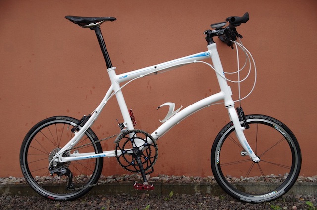 Hier mal ein paar aktuelle Bilder vom letzten (und jetzt wirklich endgültigen) Ausbauzustand. Außer dem Rahmen ist jetzt nichts mehr original. Gewicht wie abgebildet ca. 8,8 kg. Ich fahre aber meist mit Klickpedalen, außer wenn ich normale Schuhe tragen muss/will. Dann wiegt es ein paar g mehr.