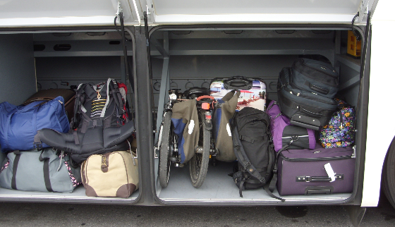 Insgesamt ist die Gepäckbeförderung im Bus wesentlich besser, als in der Bahn. Weil das Gepäck weder durch Bahnhofshallen, Gänge, Bahnsteige, Treppen, noch durch enge Gänge im Zug geschleppt werden braucht. Noch muß irgendetwas in Hochregale gewuchtet zu werden.