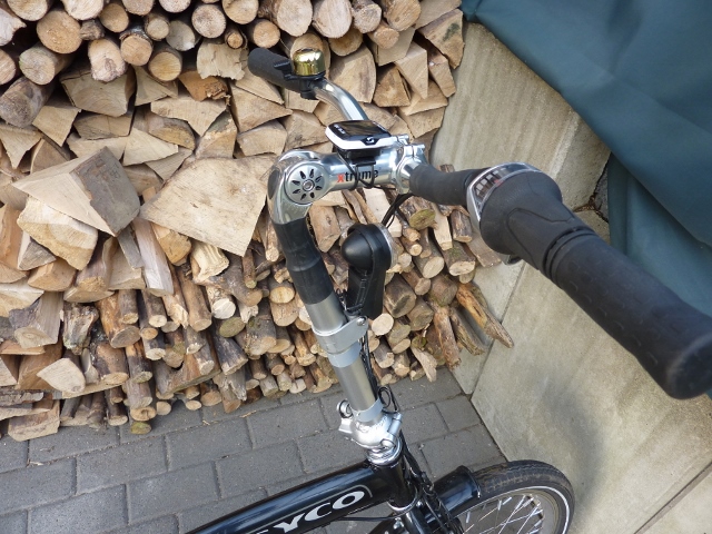 Weiterhin nimmt das Spiel im Klappgelenk des Vorbaus langsam zu. Ich habe mir vorsorglich einen neuen Vorbau bei Mifa direkt bestellt (€ 32.26 inkl. Versand) kann man m.E. nicht drueber meckern. Beim alten werde ich versuchen ein Buchse einzupassen, die Paarung Alu-Gelenk mit Stahlachse scheint mir verschleisstechnisch nicht optimal.