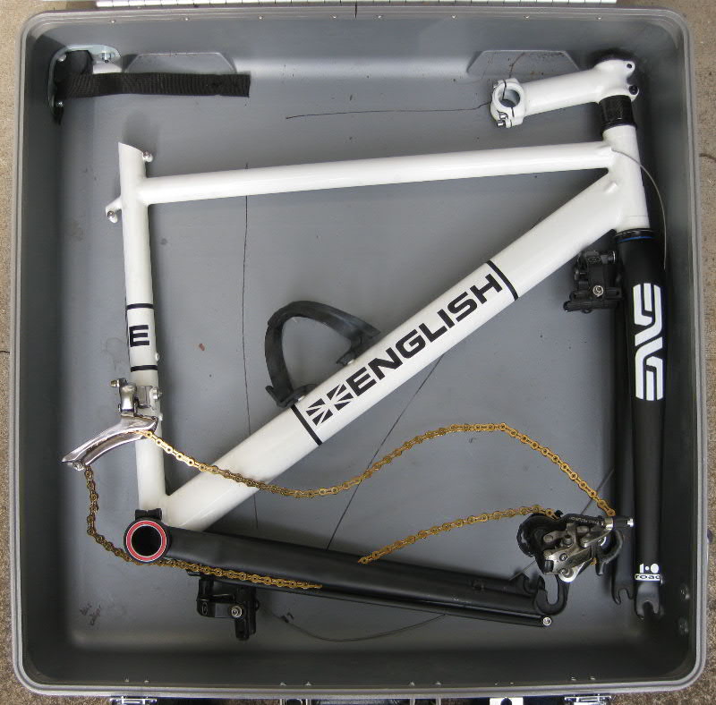 Geniale Konstruktionsideen mal wieder, speziell die Sattelschelle, die gleichzeitig die Streben fixiert. 17lb wiegt es, also 7,7kg.
