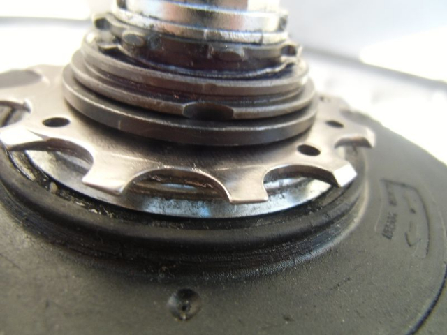 1. Abbildung: zeigt, wie die Kette auf der silbernen Dichtung hinter dem Ritzel aufsitzen würde, das "nogo".