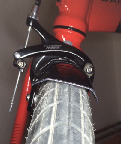 Ich habe das Schutzblech geteilt - mit einen Blechstreifen überbrückt und mit Hilfe von zwei Winkeln am Bremsbolzen befestigt. Das Schutzblech endete somit vor der Gabel und lief dann erst hinter der Bremse weiter. Dann kommt es insgesamt höher. Man muss nur die Gabel unten abdichten (Korken)