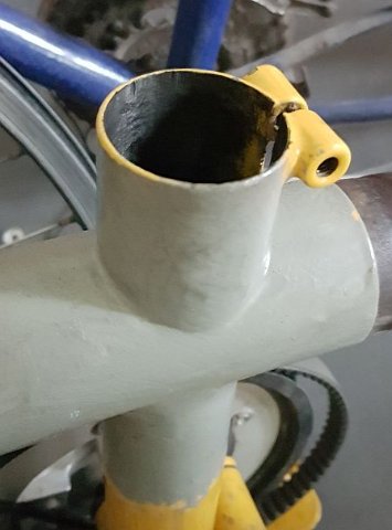 Ja, mir auch. Darum vermute ich auch, daß ich das schwarze Einschubrohr irgendwie weiterverwenden muß. Dessen Innendurchmesser beträgt ca. 36 mm. (Und der Außendurchmesser ca. 40 mm, also wurde das Sattelrohr beim Einschieben sogar 0,2 mm aufgeweitet.)