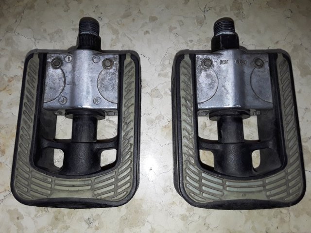 Diese Pedale kann man einklappen. Das ist sehr praktisch, wenn man das Faltmaß des Faltrads verkleinern will, ohne die Pedale abnehmen zu müssen. Sie haben die vorgeschriebenen Reflektoren. Ursprünglich waren sie an meinem Dahon-Faltrad montiert. Mir waren aber Steckpedale lieber, so dass ich sie nicht mehr benötige und günstig abgebe. Das heißt, sie waren bereits in Gebrauch, was man ihnen auch ansieht (siehe Bilder), funktionieren aber einwandfrei. Die Achsen drehen sich sehr leicht, und der Klappmechanismus ist stabil und rastet sicher ein. Sie passen an alle Fahrräder mit Standard-Pedalgewinde.