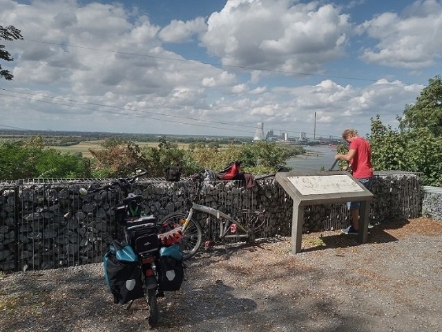 Schönes Foto. Ich freue mich auch, dass es endlich "geklappt" hat. Da es ein Happy End gegeben hat, hätte es im Nachhinein eigentlich nicht besser laufen können. Eine Werkbank mit vernünftiger Arbeitshöhe und Panoramablick. Wir konnten in Ruhe quatschen und mussten nicht auf den Verkehr achten. War ja kein Rennen wie sonst, daher bestand kein Zeitdruck für die Reparatur. War glaube ich meine bisher schönste Panne.