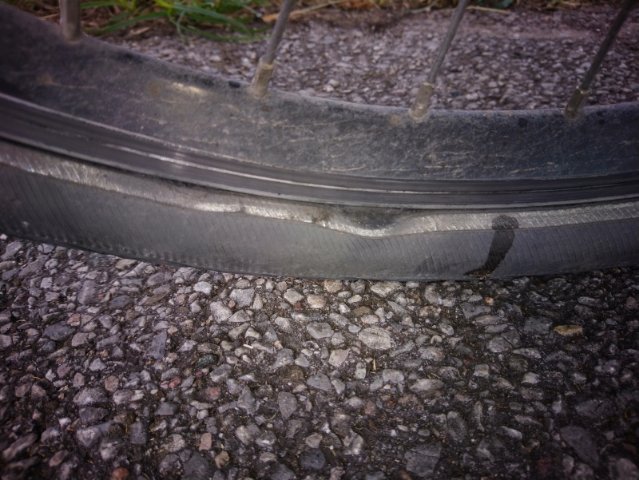 Mit einem Riesenflicken und Mottes Werkzeug habe ich den Schlauch noch wieder dicht bekommen. Wir mussten aber abbrechen und ich habe vorsichtig den Heimweg angetreten und zuhause dann den Reifen gewechselt. Mit einer Feile habe ich Macken in der Felge beseitigt. Über Mottes Vorschlag noch eine kurze Proberunde oben auf Halde zu drehen, habe ich etwas geschmunzelt. Ich hatte mich ja schon an der Abfahrt mit 11% Gefälle positioniert. Tja, dabei ist dann aufgefallen, dass ich die hintere Bremse noch nicht wieder eingehängt habe.